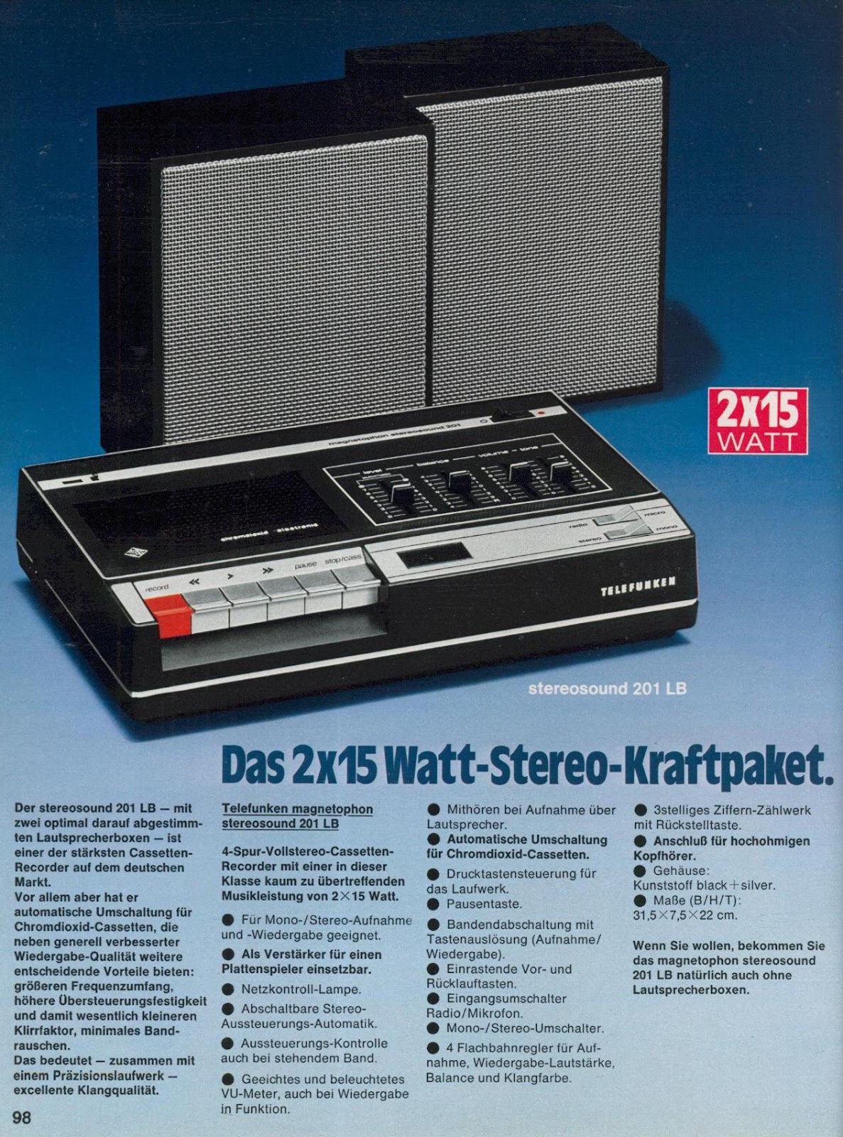 TC600 HiFi, Magnetofony; Stereosound 201 LB, MC500, MC300, MC200, MC100,